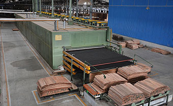 此干燥機融合了國內外先進技術:加大直徑網輥和小節(jié)距加密不銹鋼網帶使干燥后的木皮平整且無應力。